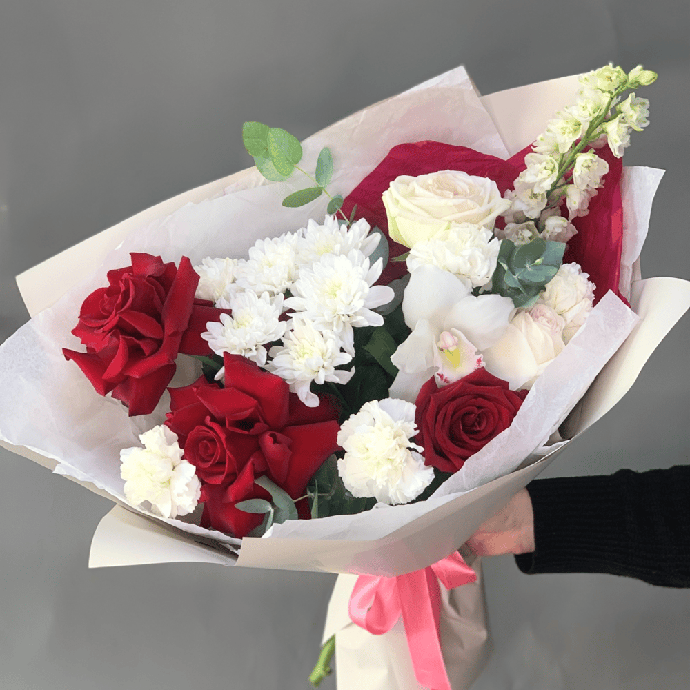 Авторский букет Вместо тысячи слов 1138 из гвоздик и роз