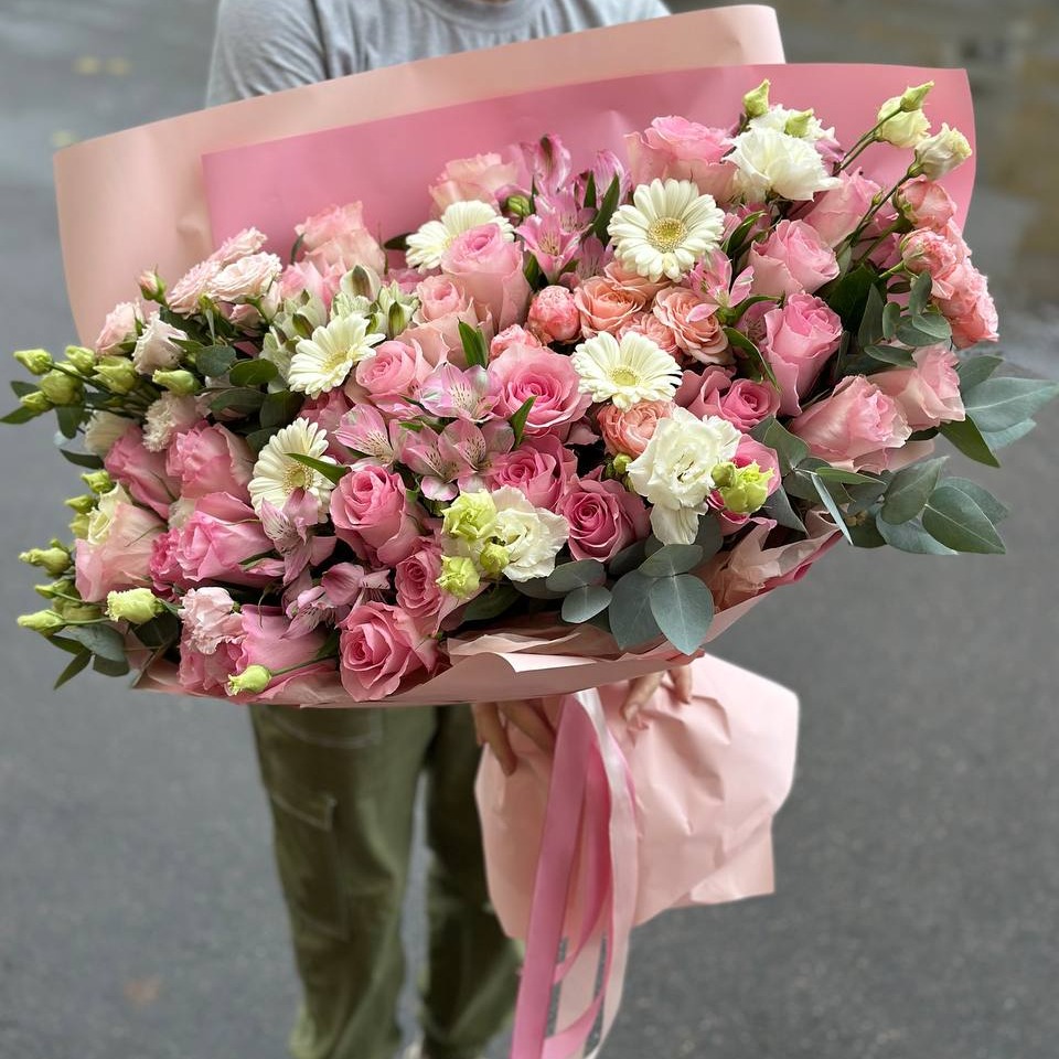 Авторский нежный букетик для мамы из роз и альстромерий