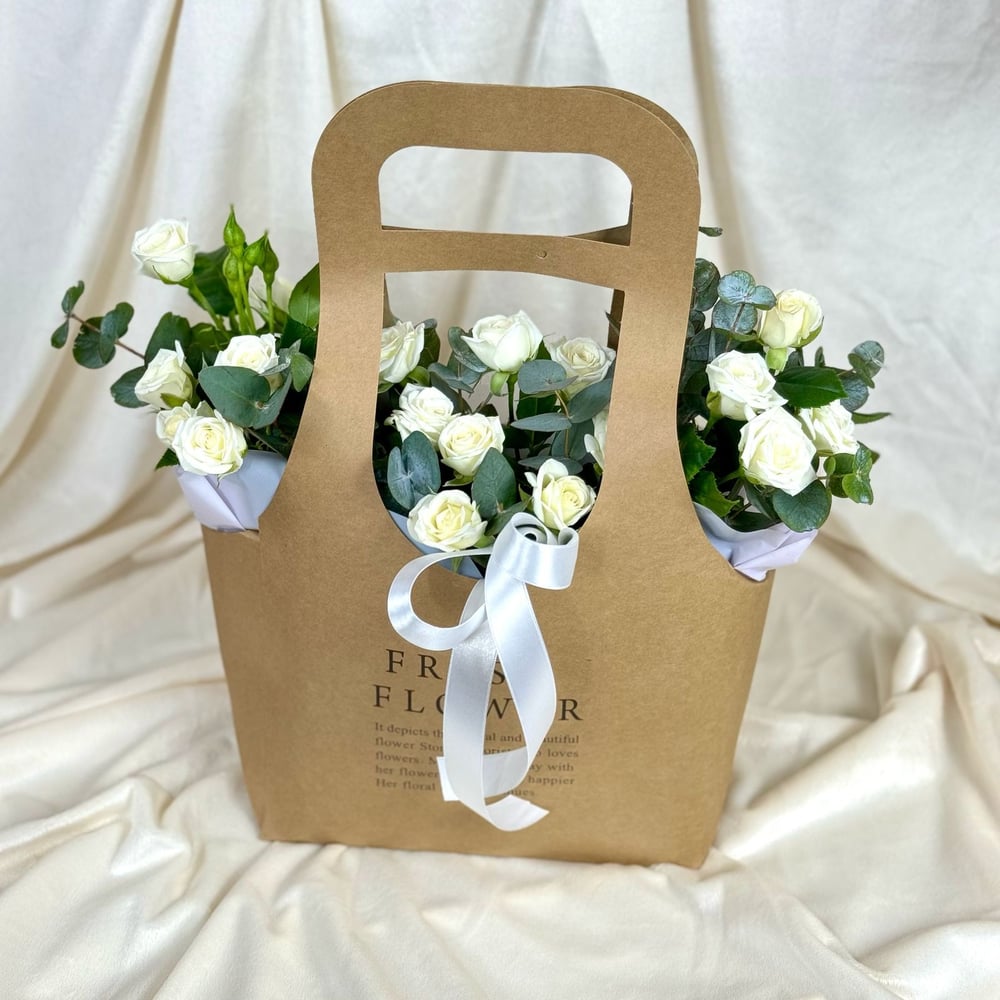 Сумочка из кустовых роз и эвкалипта