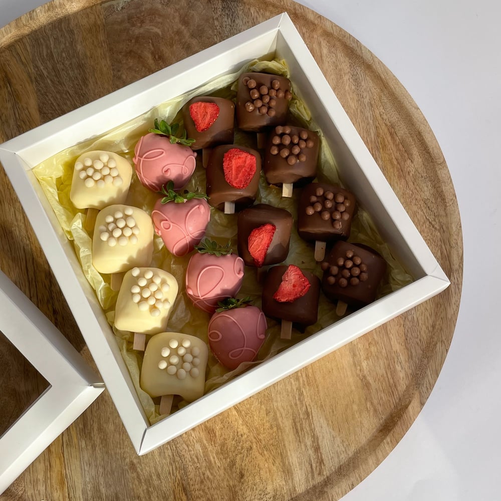 В состав набора входит: — 4 кусочка банана в белом шоколаде, декор шоколадные шарики — 4 кусочка банана в молочном шоколаде, декор шоколадные шарики — 4 кусочка банана в молочном шоколаде, декор слайсы сублимированной клубники — 4 ягоды клубники в розовом шоколаде, декор шоколадные вензеля Примечание: — Набор имеет прозрачную крышку и перевязан атласной лентой с бантом. — Размеры упаковки 21*21 см — Натуральный продукт. Срок годности бананов в шоколаде до 24-48 часов. Срок годности клубники в шоколаде 24 часа. Храните в холодильнике при температуре +4..+8 градусов.