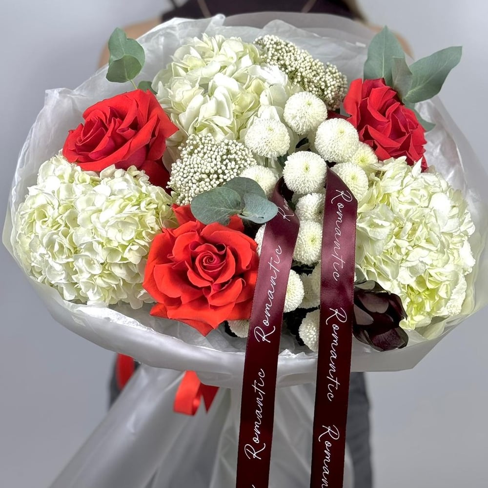 Букет «Белая грация» из роз и гортензий