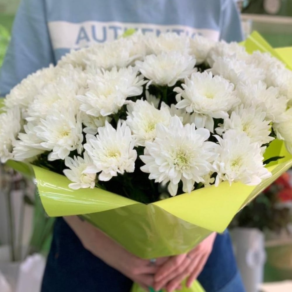 Букет из белоснежной кустовой хризантемы. Как известно, стойкость у хризантем очень хорошая.