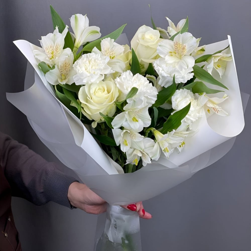Белоснежный букет Amore Eterno из роз и альстромерий