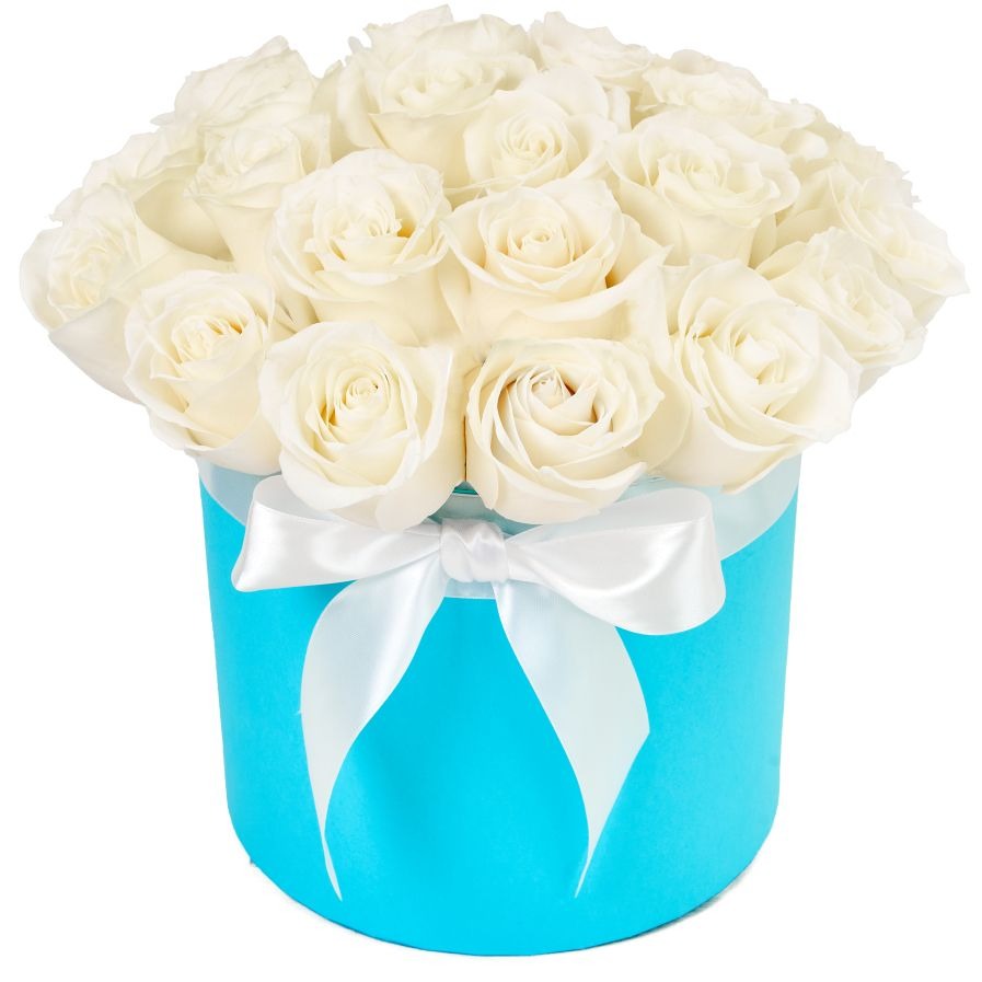 Шляпная коробка с цветами «Белые розы в коробке "Симпатия", 19 шт»