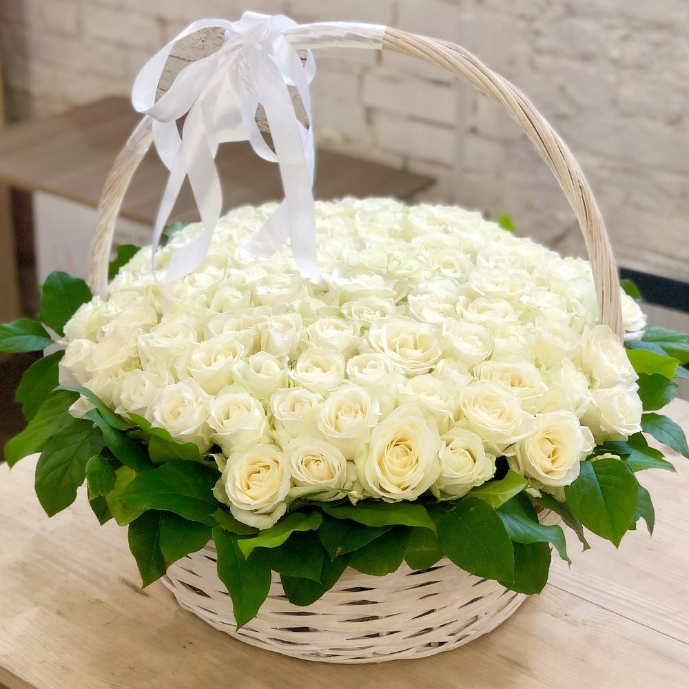 Шикарная, элегантная корзина из 101 белой розы.