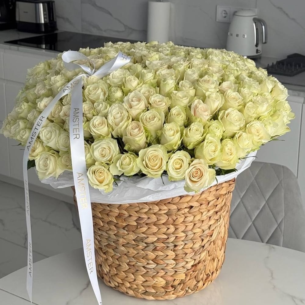 Белые розы в корзине