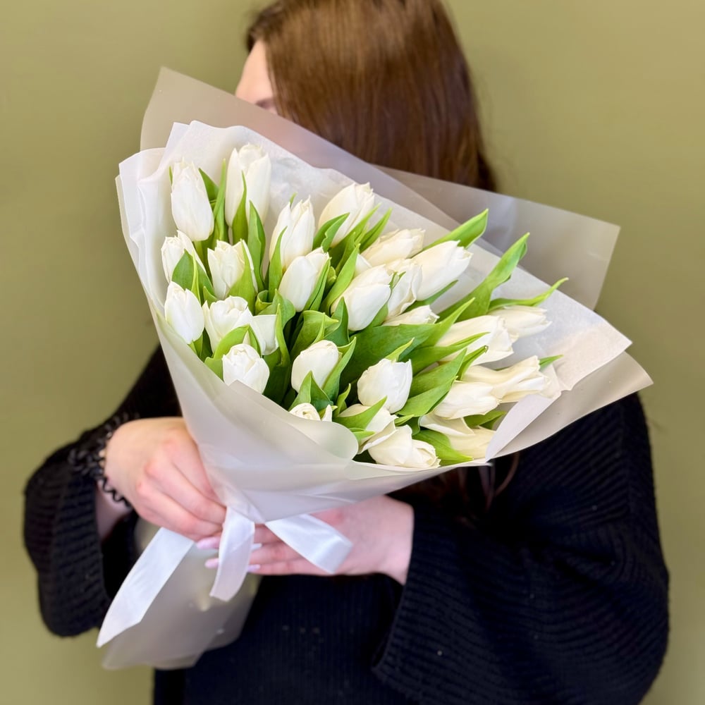 Букет «Белые тюльпаны 25 шт»