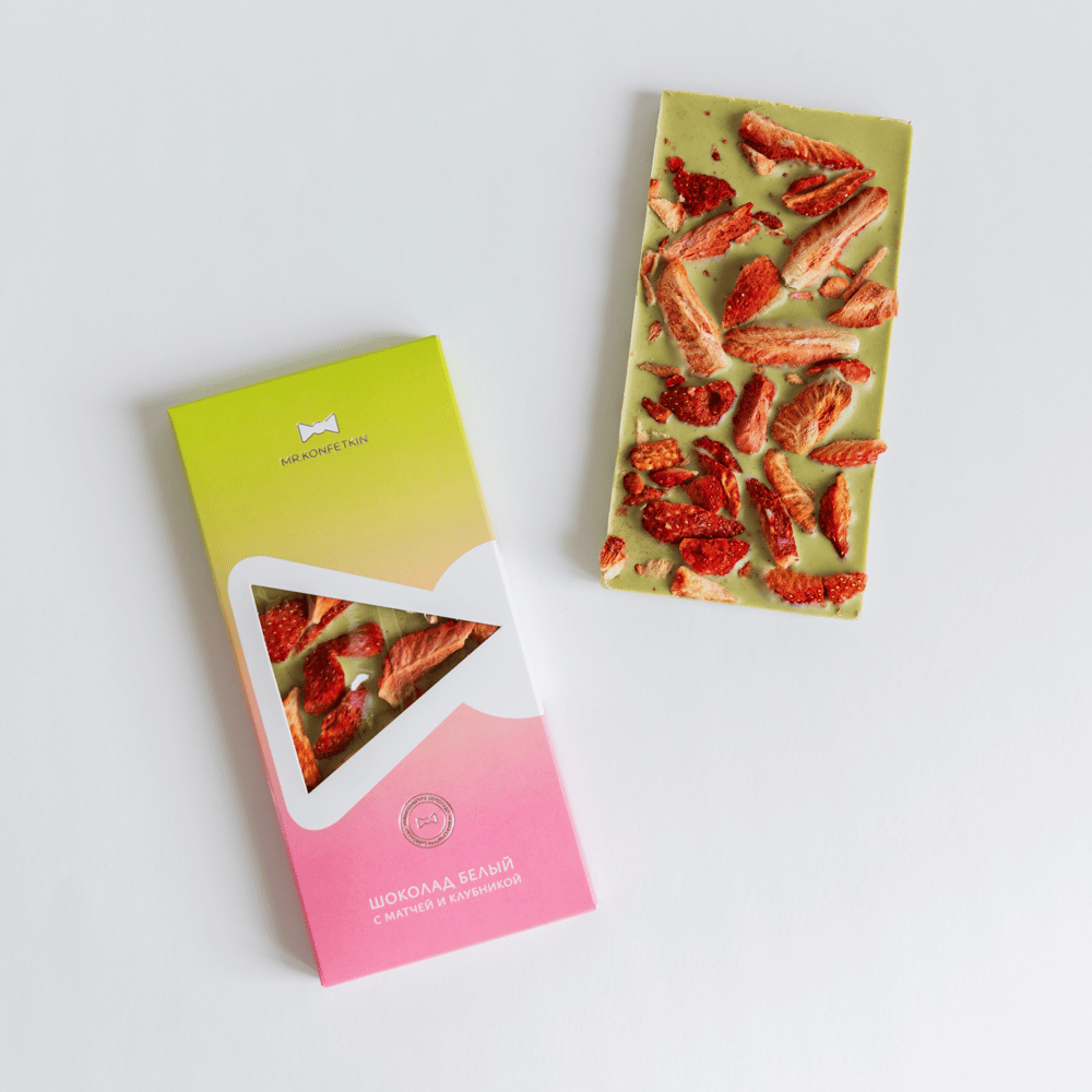 Белый ПП шоколад с чаем матча и клубникой
