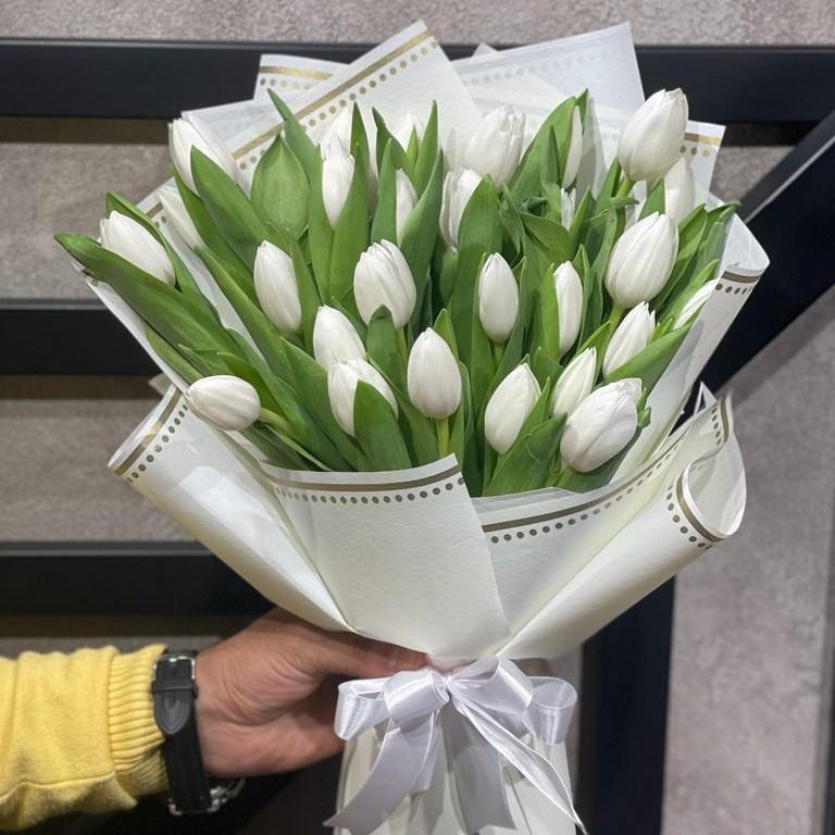 Белоснежный букет из нежных тюльпанов - это чудо !