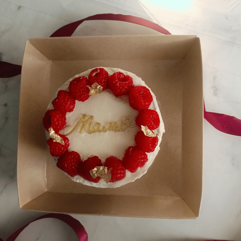 Начинка сникерс Бенто торт, мини тортик диаметр 10 см , высота 5 см Вес 350 гр Венок мармеладный, выполнен из малинового пюре