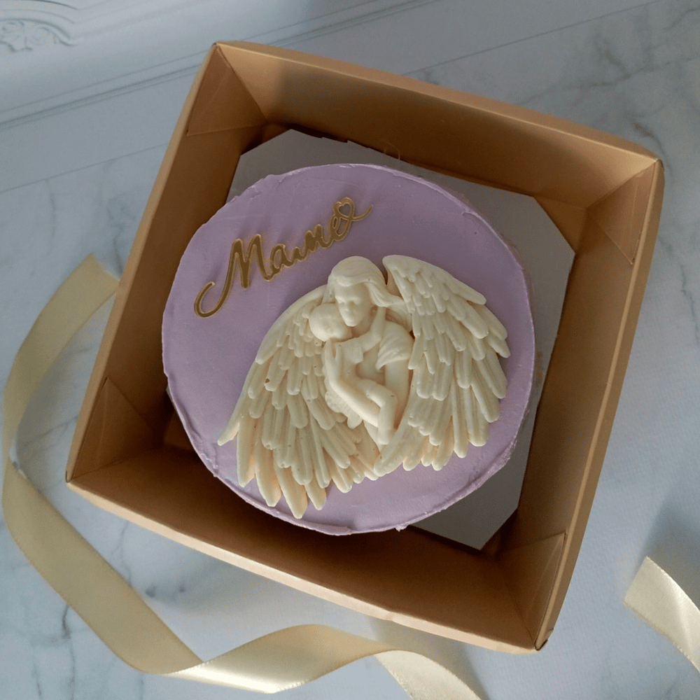 Бенто торт для самой прекрасной женщины в вашей жизни ❤ Фигурка выполнена из глазури в виде мамы ангела держащей на руках своего ребёнка ❤ С радостью помогу обрадовать вашу маму❤🙏 Размер 12 см ...