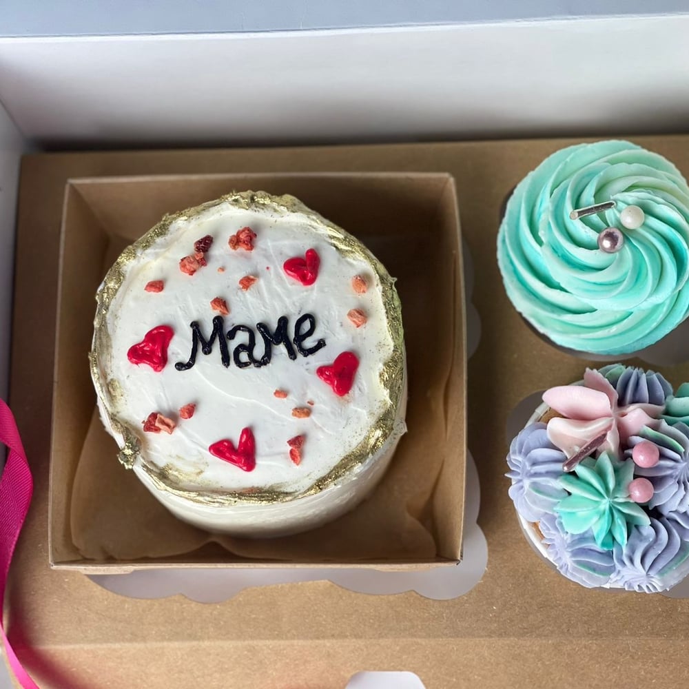 Бенто-торт Маме и два капкейка