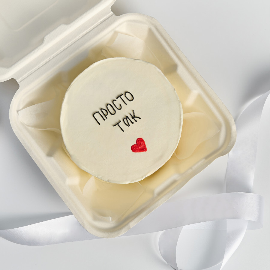 Бенто-торт "Просто так" со вкусом ваниль-клубника Вес: 300 гр. Состав: ванильный бисквит с клубничным конфи, крем-чиз на основе творожного сыра