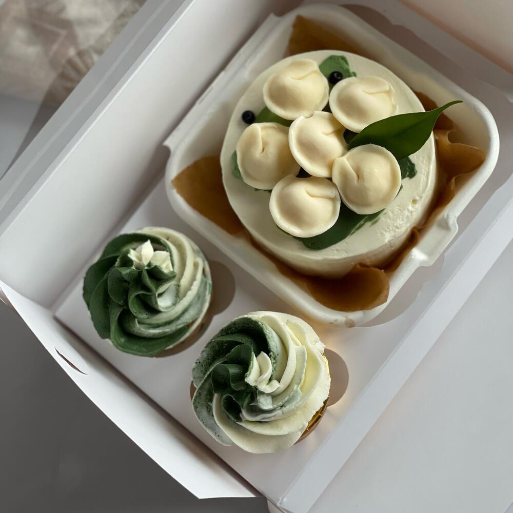 Бенто торт с пельменями и капкейками