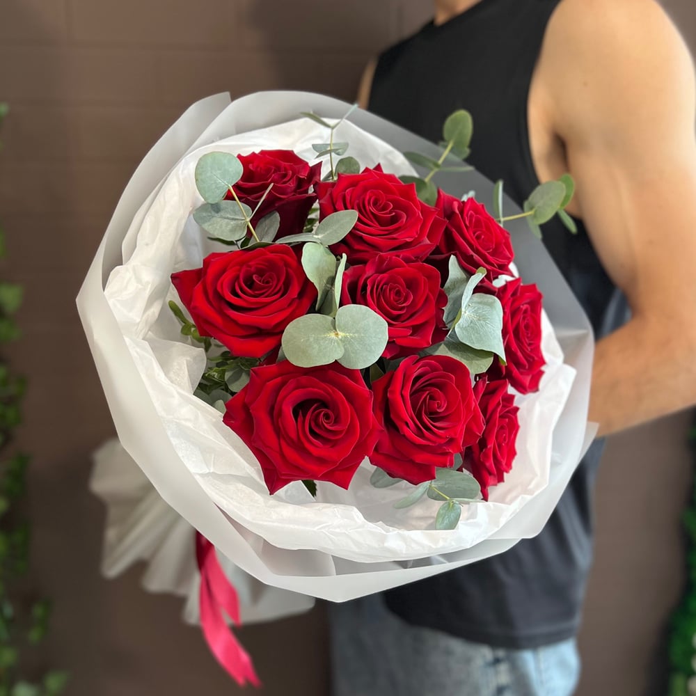 Красные розы- это нестареющая классика, которая не оставит равнодушными тех, для кого они предназначены! Уход: • Обязательно подрезать перед тем как ставить в воду! • Советуем обновлять воду и срез как можно чаще! Снять упаковку на 2-3 день! Держать цветы подальше от всего что греется! Ухаживайте за цветами, помогайте им дышать и радовать вас дольше! Цветы создают близость . Цветы дарят счастье не только счастливому получателю, но и дарителю, создавая связь между людьми, как это могут сделать немногие другие подарки. Исследование Ратгерса показало, что цветы — это подарок, который люди ценят больше всего.