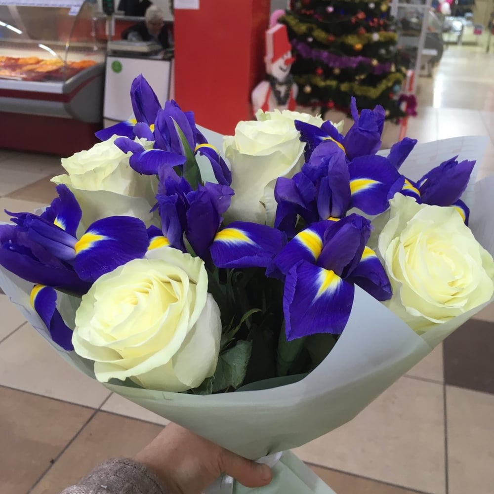 Букет «Безмятежность» из ирисов и роз