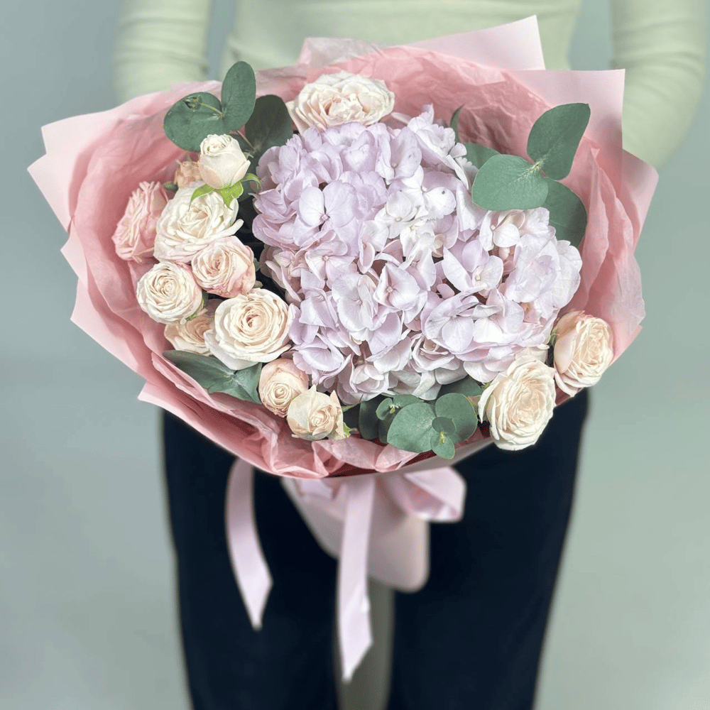 Букет «Благородная леди» из роз и гортензий
