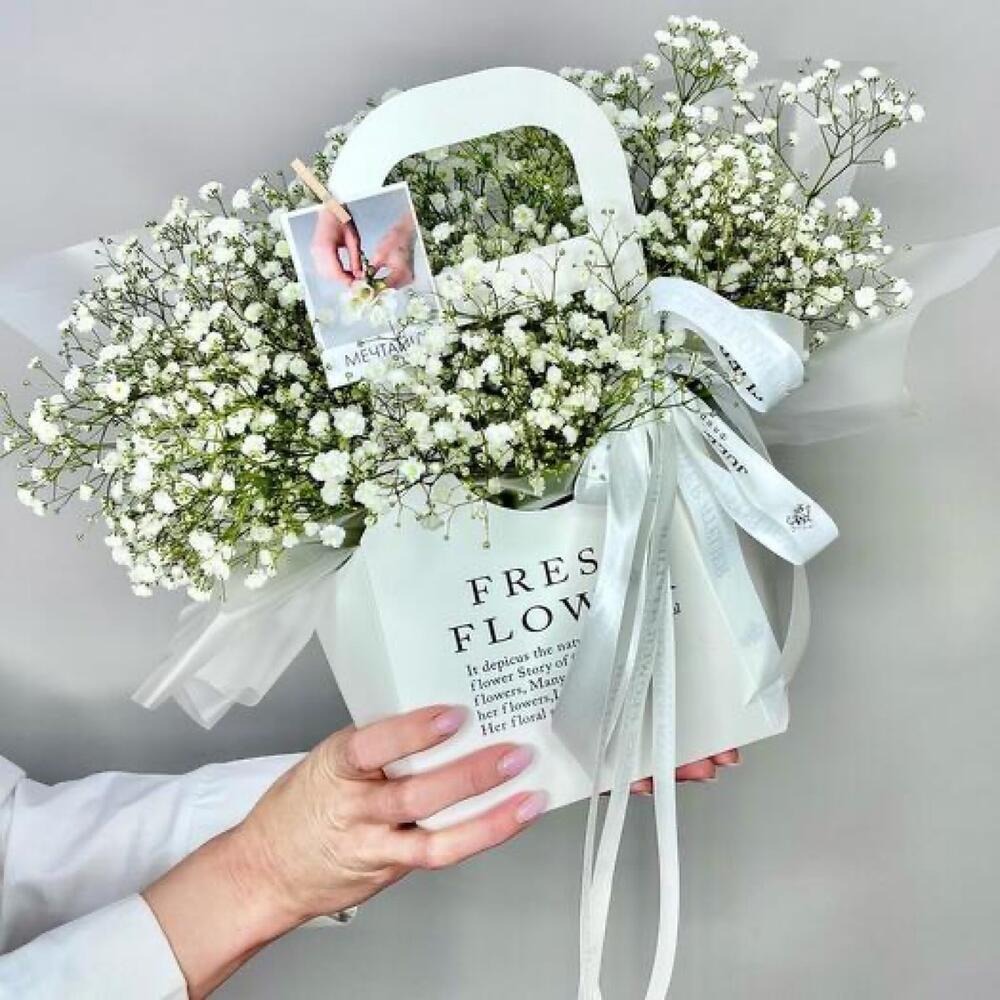 Коробка с цветами «Блен-де-блан» из гипсофил