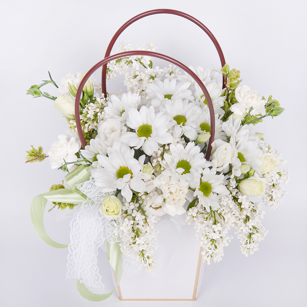 Букет «Блеск луны» — это волшебное сочетание кустовых хризантем и гвоздик, сирени и лизиантусов, которое создаёт атмосферу таинственности и нежности. Букет «Блеск луны» создан опытными флористами с использованием только свежих цветов. Он будет радовать получателя своей красотой и ароматом на протяжении нескольких дней. Букет «Блеск луны» станет прекрасным подарком на день рождения, свадьбу, юбилей или годовщину, а также может быть использован в качестве знака внимания или благодарности. Этот букет не только красив, но и уникален. Он сочетает в себе разные оттенки и формы, создавая неповторимую композицию, которая подчеркнёт вашу заботу и внимание. Букет «Блеск луны» упакован в стильную цветочную сумку, что делает его ещё более удобным и практичным подарком.