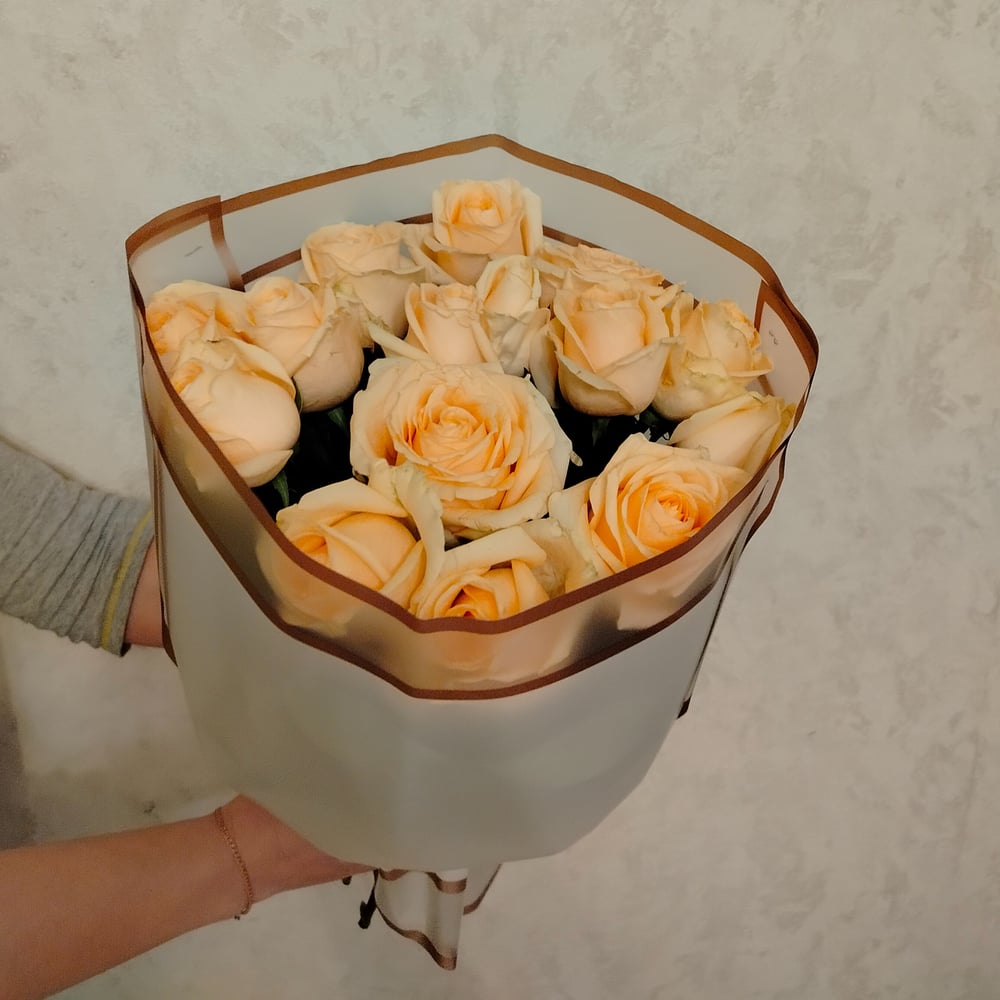 Изысканный цвет роз с оттенком игристого шампанского, оформленный в современную упаковку бокал. Невероятный аромат и приятные впечатления.