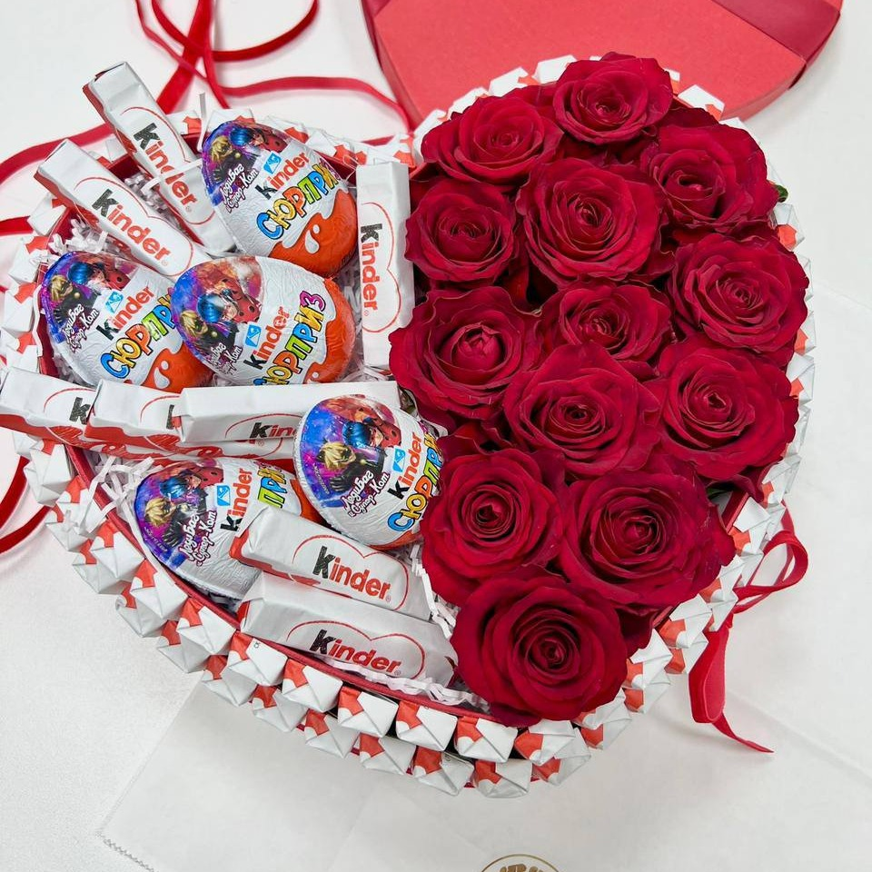 Сердце из роз и киндеров