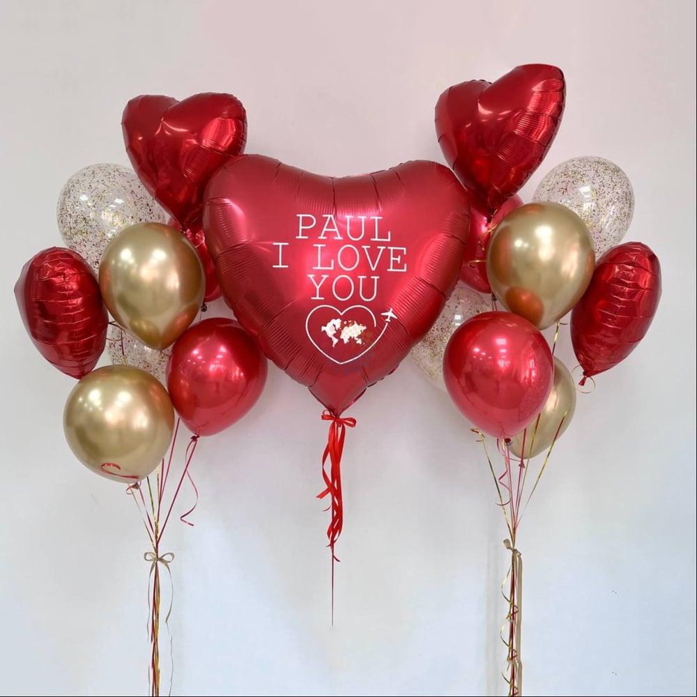 В этот День всех влюбленных удивите свою вторую половинку уникальным большим набором воздушных шаров, который станет символом вашей любви и заботы. Этот набор включает огромное красное сердце с вашей персонализированной надписью и два фонтана из шаров, которые создадут романтическую атмосферу для вашего праздника. • Большое красное сердце (55 см): Этот эффектный шар в форме сердца можно украсить вашей уникальной надписью, что сделает его не только красивым, но и очень личным подарком. Напишите теплые слова или признание в любви, чтобы ваш подарок запомнился навсегда. • Два фонтана из шаров: Каждый фонтан состоит из 8 шаров, включая 2 красных сердца и 6 латексных шаров в красном, золотом и прозрачном цветах с конфетти. Эти яркие и праздничные элементы создадут волшебную атмосферу и наполнят ваше пространство радостью и весельем. Не упустите возможность сделать этот 14 февраля незабываемым! Закажите наш большой набор воздушных шаров с красным сердцем и фонтаны шаров и подарите своей любимой/любимому радость, улыбки и море положительных эмоций. Пусть ваша любовь будет яркой и запоминающейся!