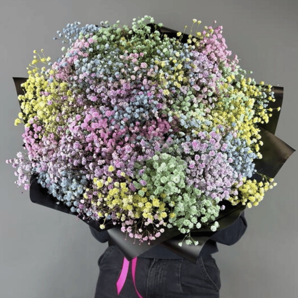 Большой букет радужной гипсофилы