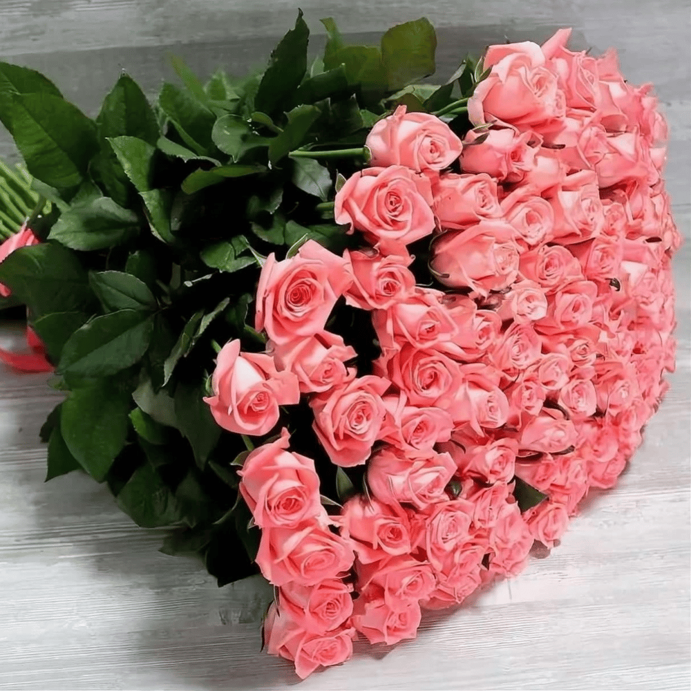 Букет из 71 розовой розы станет отличным вариантом для признания в любви и скажет о ваших чувствах без слов.