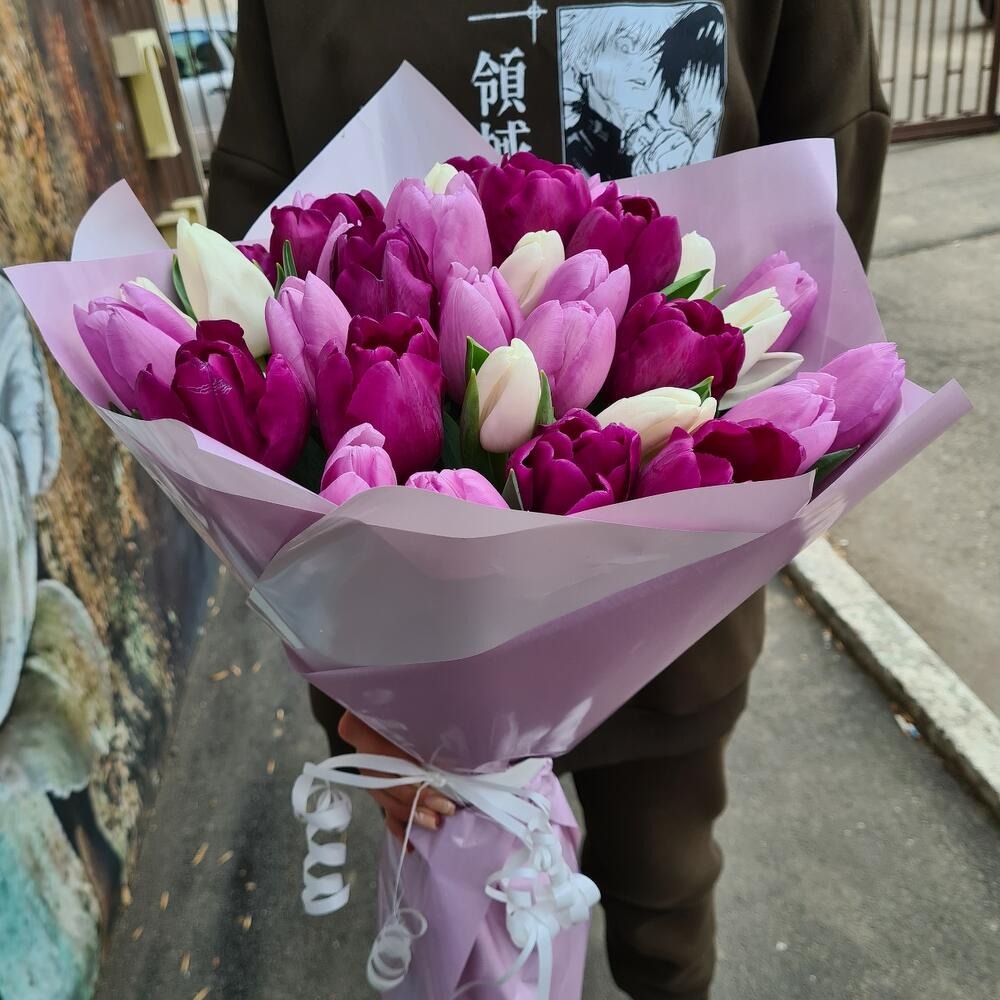Вас приветствует цветочный Салон Бьюти букет. Мы создали подборку стильных, красивых букетов из тюльпанов премиум класса. Обращаем ваше внимание, что расположение цветов, цветовые оттенки могут отличаться от заявленного на фото, но мы всегда сохраняем стилистику заявленного букета, собираем букеты стильно и со вкусом. Приобретая у нас букет, вы гарантировано получите востор получателя от букета!