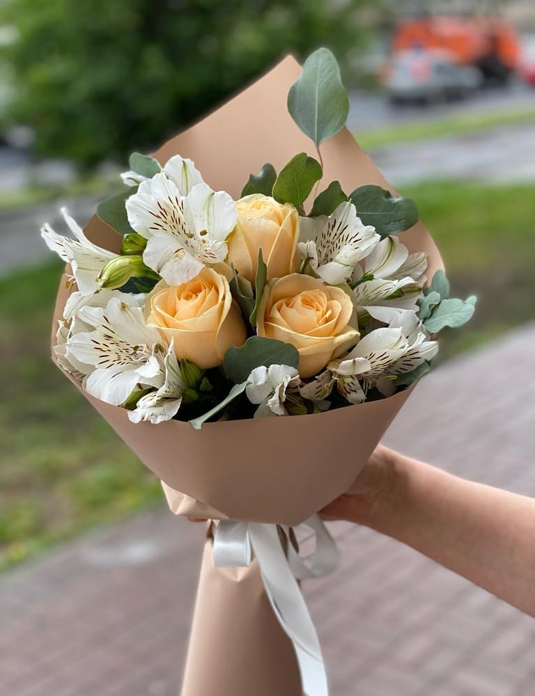 Букет «Бордер» из альстромерий и роз