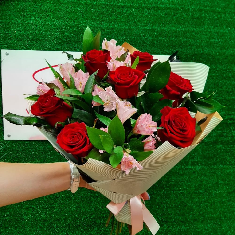 Букет «Бриджит» из роз и альстромерий
