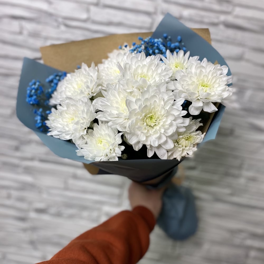 Букет «Будь собой» из хризантем и гипсофил