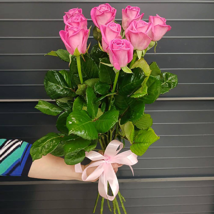 Букет и розовых премиум роз сорта Аква из 9 шт, декорированный розовой атласной лентой, станет ярким подарком для любого повода или комплиментом для поднятия настроения.
