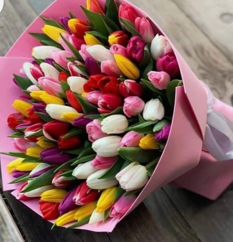 Тюльпаны – это символ обновления и новых начинаний. Их утончённая красота и изящные формы делают этот букет элегантным подарком для любого случая. Он словно лёгкий весенний ветерок, приносящий с собой свежесть, мечты и добрые перемены.