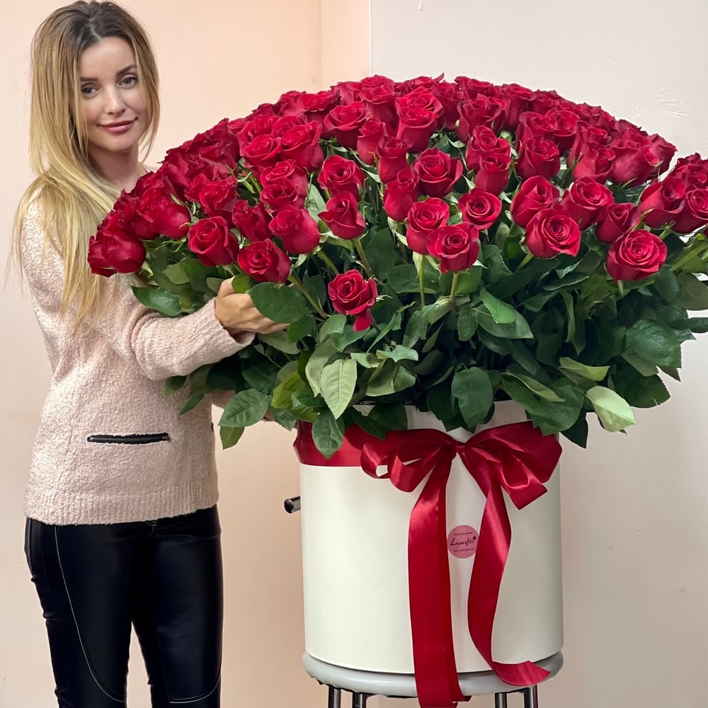 Шляпная коробка с цветами «Букет 101 розы в коробе»