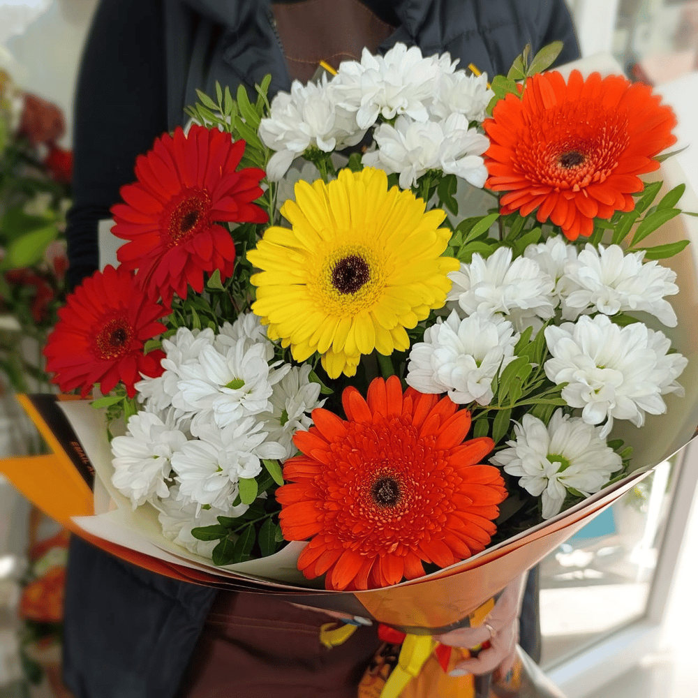 Букет «Разноцветье» из гербер и хризантем