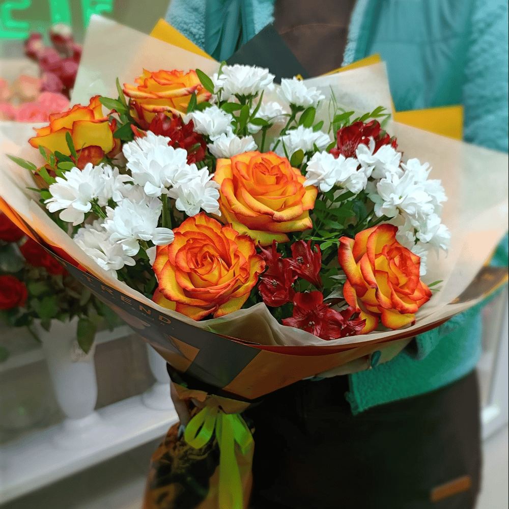 Яркий и сочный букет для ярких и дерзких, для тех кому не хватает ярких красок в пасмурную погоду. Такой букет не останется без внимания.