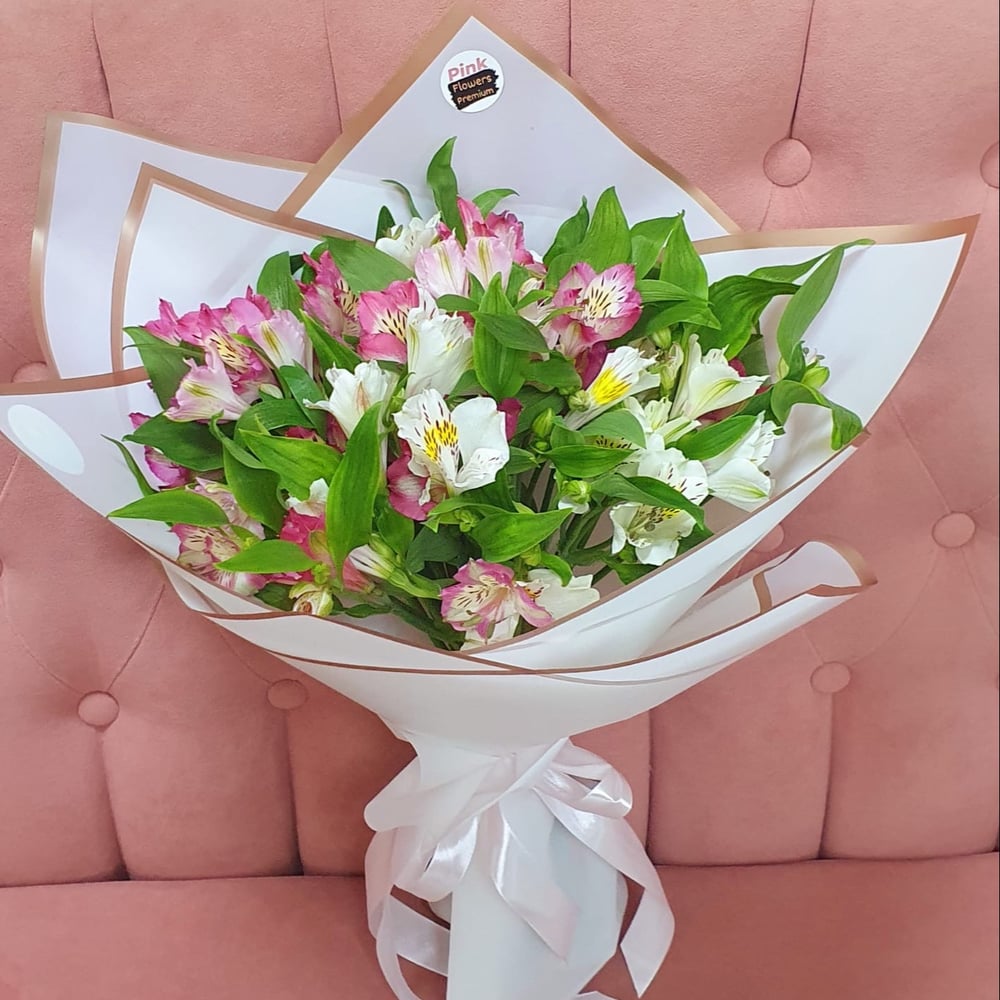 Очаровательный букет из альстромерий — символ изысканности и нежности. Каждая веточка изобилует утонченными цветками в самых разных оттенках, олицетворяя элегантность и теплоту. Этот букет станет отличным подарком, чтобы выразить чувства, порадовать близкого человека или создать уютную атмосферу в доме. Альстромерии славятся своей стойкостью, наполняя пространство красотой и свежестью на долгое время.