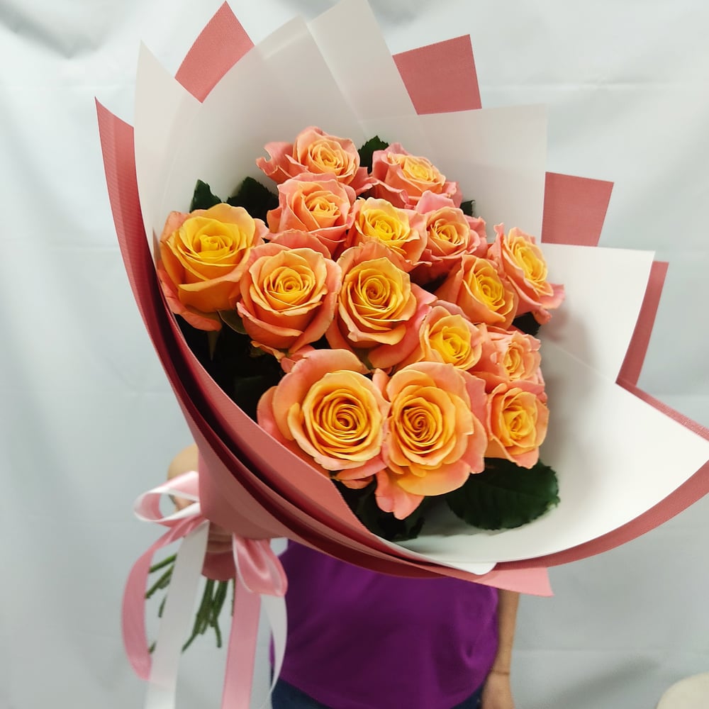 Яркие оранжевые розы Мисс Пигги с легким ароматом подойдут для поздравления по любому поводу.