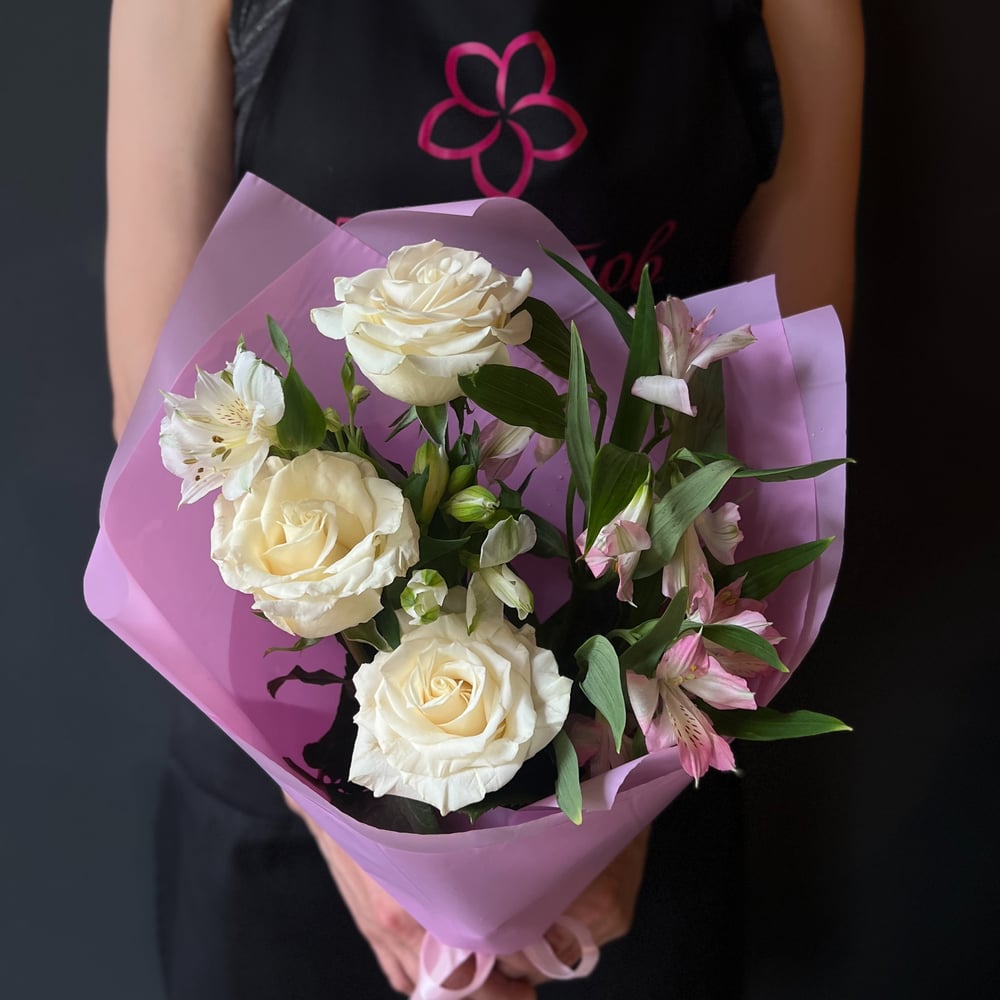 Букет живых цветов "3 белые розы, 4 альстромерии микс" – это сочетание изысканности и утонченности, которое подарит радость и ощущение праздника. Букет состоит из трех белых роз и четырех альстромер…