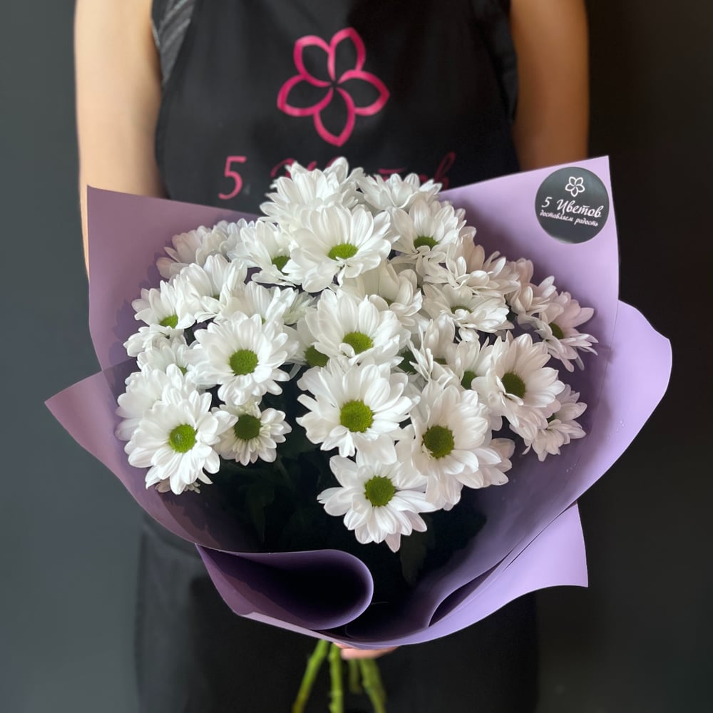 Букет живых цветов - 5 белых хризантем: радость и красота в одном подарке<br/><br/>Презентуем вашему вниманию букет живых цветов - 5 белых хризантем от 5 Цветов. Этот стильный и элегантный подарок станет отличным дополнением к любому торжеству или событию.<br/><br/>Букет состоит из 5 белых хризантем, которые символизируют чистоту и свежесть. Белые цветы всегда ассоциируются с невинностью и чистотой, что делает их прекрасным выбором для любого случая.<br/><br/>5 Цветов – это команда профессионалов, которые специализируются на создании уникальных и запоминающихся букетов. Они используют только свежие и качественные цветы, чтобы подарить вам и вашим близким радость и красоту.<br/><br/>Букет живых цветов - 5 белых хризантем от 5 Цветов станет отличным выбором для тех, кто хочет сделать оригинальный и запоминающийся подарок. Этот стильный и элегантный букет будет радовать получателя своей красотой и свежестью.