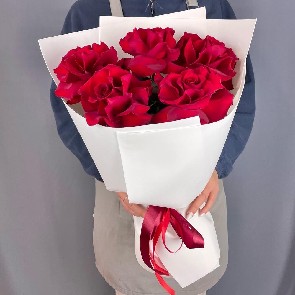Невероятный букет из 5 красных французских роз❤️ Станет классным подарком на день рождения, юбилей, свадьбу, помолвку, а также приятным сюрпризом без повода😇 Букет подойдёт в подарок для любимой...