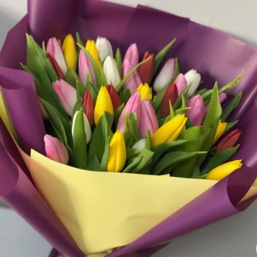 Лёгкость, свежесть и нежность – этот букет из тюльпанов словно оживляет весеннее утро. Яркие и воздушные, они наполняют день радостью и теплом, создавая атмосферу счастья и пробуждения. Идеальный подарок, чтобы выразить заботу и любовь без лишних слов.