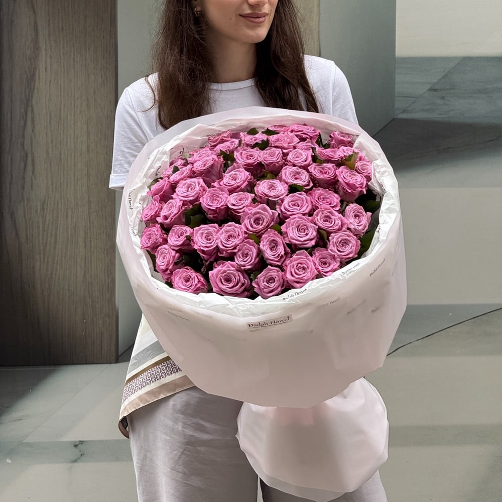 Букет из 51 розы розово-сиреневого цвета.