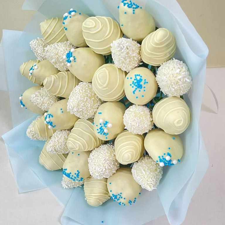 Букет из клубники в шоколаде премиум класса с дизайнерским оформлением