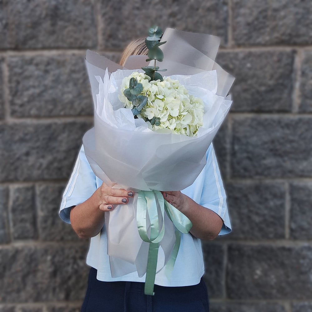 Букет "Белая гортензия и эвкалипт"