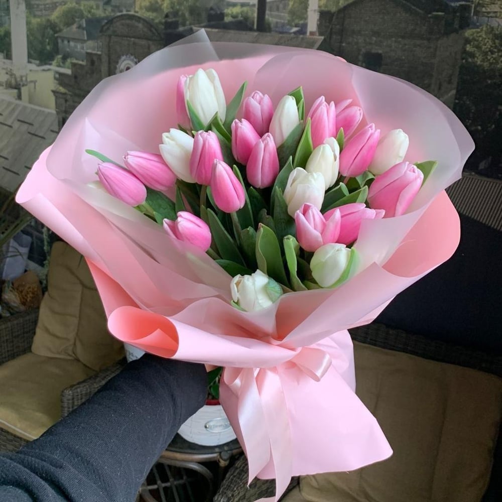 Букет Бело-Розовые тюльпаны