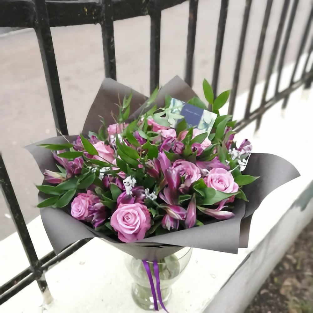 Тренд 2020 года! Букет в сиреневых тонах и в чёрной упаковке. Ооочень стильно ! Подойдёт для модных получателей как девушкам так и мужчинам.