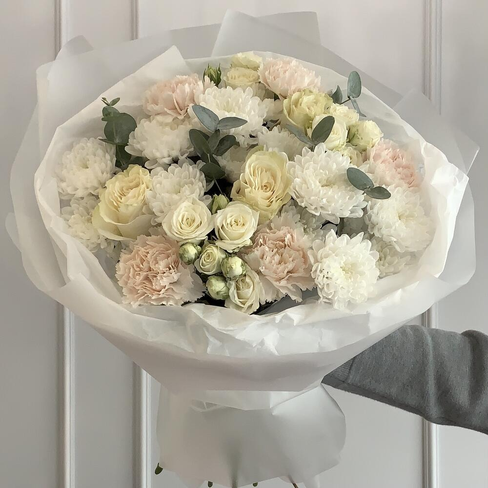 Стильный Воздушный букет в нежных оттенках. Такой букет можно без раздумий подарить кому угодно - маме, любимой, подруге, бабушке или коллеге. В дополнении к каждому нашему букету идет Сладкий подарок от магазина