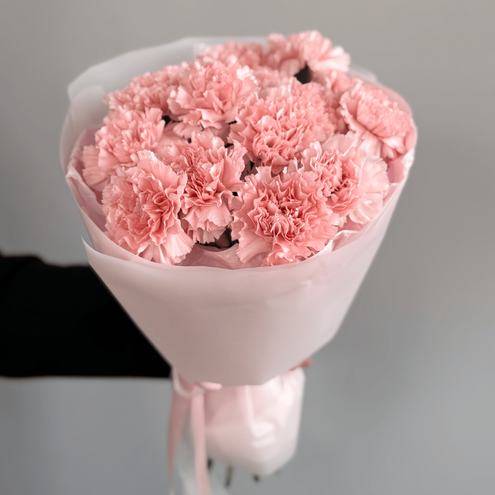 В состав букета входит : - розовая гвоздика - 15 шт - Букет бережно упакован в современную корейскую упаковку и перевязан атласной лентой❤️ — Дизайнерская упаковка с атласной лентой 🎀 —Каждый цветок уникален, поэтому повторить букет 1в1 невозможно. Мы соблюдаем соответствие общего количества цветов, цветовой гаммы и объема букета. — Цветы установлены на акваножке — специальной упаковке с водой для поддержания свежести — В каждый букет добавляется инструкция по уходу за цветами и кризал — подкормка для срезанных растений — Букет бережно упакован в крафт, который защищает от внешних факторов